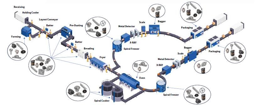 From cutting and conveying to packaging, Solve provides the essential motion and power transmission components that keep poultry lines running efficiently. Our hygienic, IP69K-rated bearings, chains, couplings, bushings, and sheaves are engineered to perform in the industry’s harshest washdown environments.