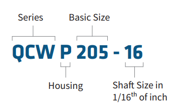 Each IPTCI Mounted Ball Bearing part number is a unique combination indicating the bearing's type, series, housing and shaft size.
